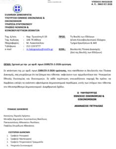 Ωστόσο, το Υπουργείο Εθνικής Οικονομίας και Οικονομικών, ωσάν «δερβέναγας» των χρημάτων μας και «χωροφύλακας» ποιος θα δώσει, τί και πού, εξέδωσε απάντηση του στυλ: «εγώ δεν έχω καμία αρμοδιότητα, αλλά δεν πρόκειται να πάρετε τίποτα». Συγκεκριμένα στο υπ΄ αριθμ. πρωτ. 39623 ΕΞ 2026/09.03.2026 έγγραφό του αναφέρει: «… τα ζητήματα (εννοεί και το έκτακτο μέρισμα) εκφεύγουν των αρμοδιοτήτων του Υπουργείου Εθνικής Οικονομίας και Οικονομικών. Σε κάθε περίπτωση οποιαδήποτε παροχή θα πρέπει να λαμβάνει υπόψη τα εκάστοτε υφιστάμενα Δημοσιονομικά περιθώρια, εντός των στόχων που τίθενται στο Μεσοπρόθεσμο Δημοσιονομικό – Διαρθρωτικό Σχέδιο». Δηλαδή «ζήσε Μάη μου να φας τριφύλλι».