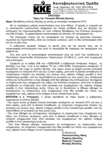 Το ΚΚΕ κατέθεσε ερώτηση προς τον Υπουργό Εθνικής Άμυνας, με τη διαδικασία του κοινοβουλευτικού ελέγχου, που έχει ως εξής:
